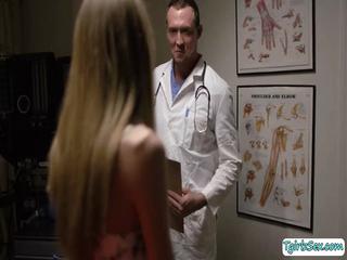 Der Arzt vergreift sich an dem schlanken Transgirl indem er sich an ihrem Arsch bedient – Skinny Trans
